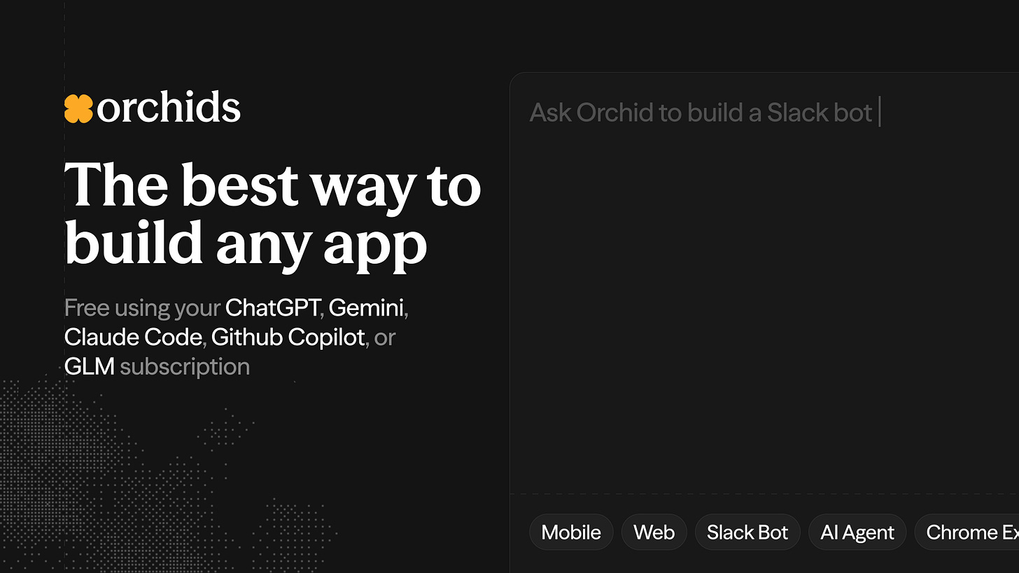 Build anything. From Web, mobile, internal tools, browser extensions, scripts, and bots. Orchids.app is capable of building anything that you can put your mind to.