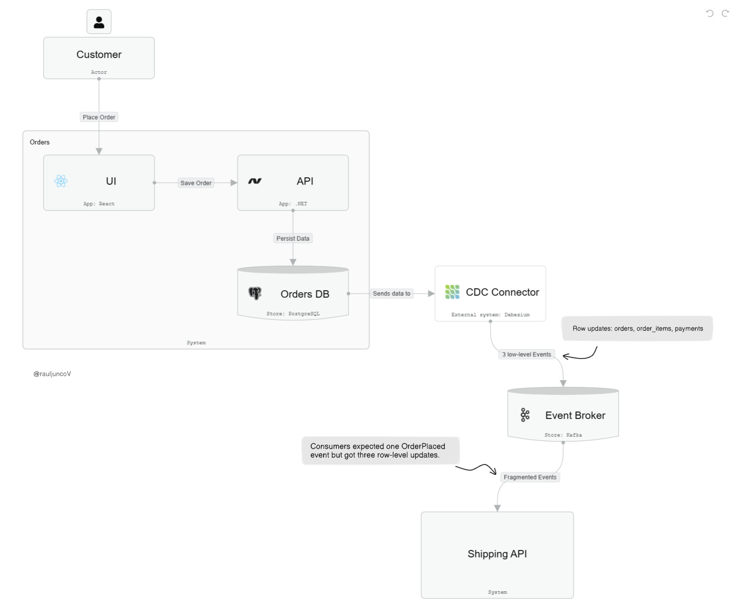 Instead, they get a stream of row changes and have to reconstruct the business fact themselves. This adds complexity, invites inconsistent interpretations, and turns your supposedly decoupled consumers into fragile data archaeologists.