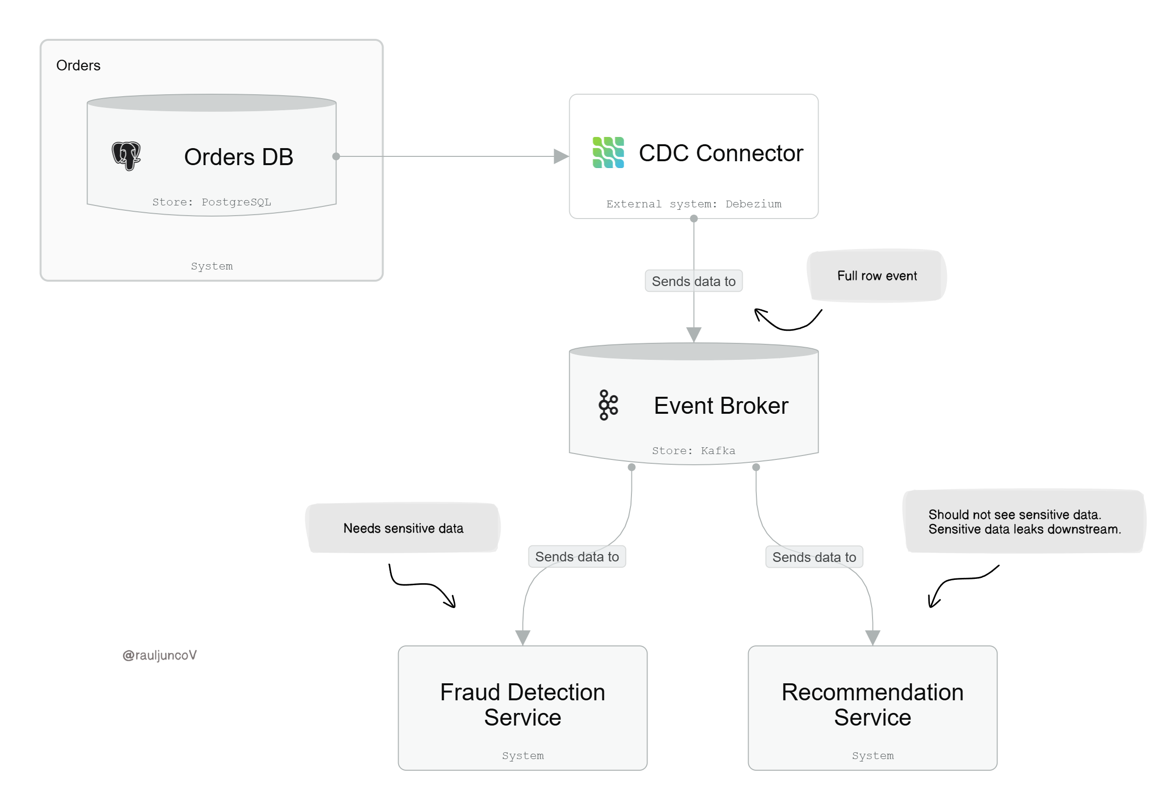 Instead of protecting sensitive fields at the source, CDC spreads the risk system-wide.