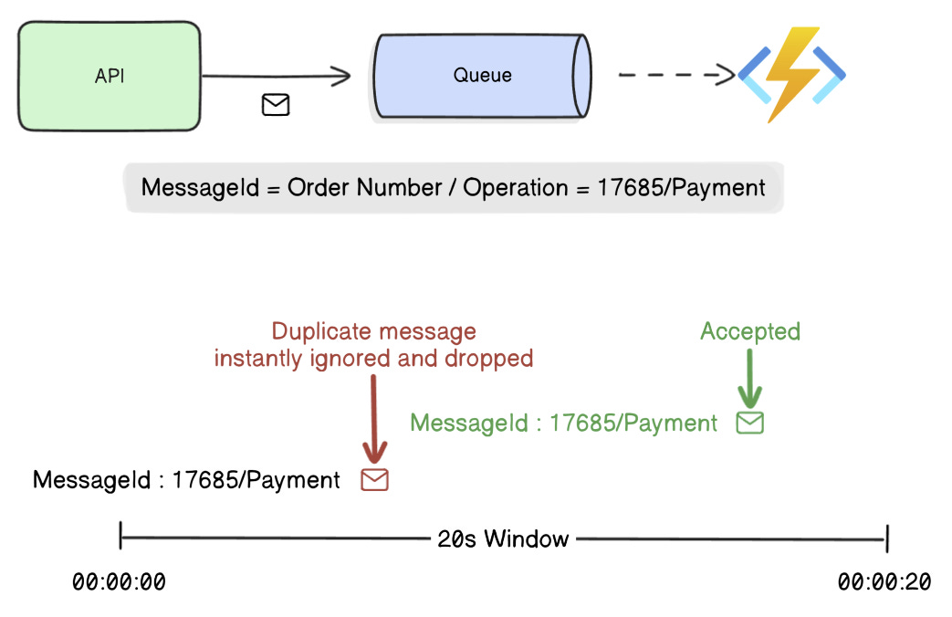 Why it works: The message infrastructure becomes the gatekeeper; duplicates don't even hit your app.