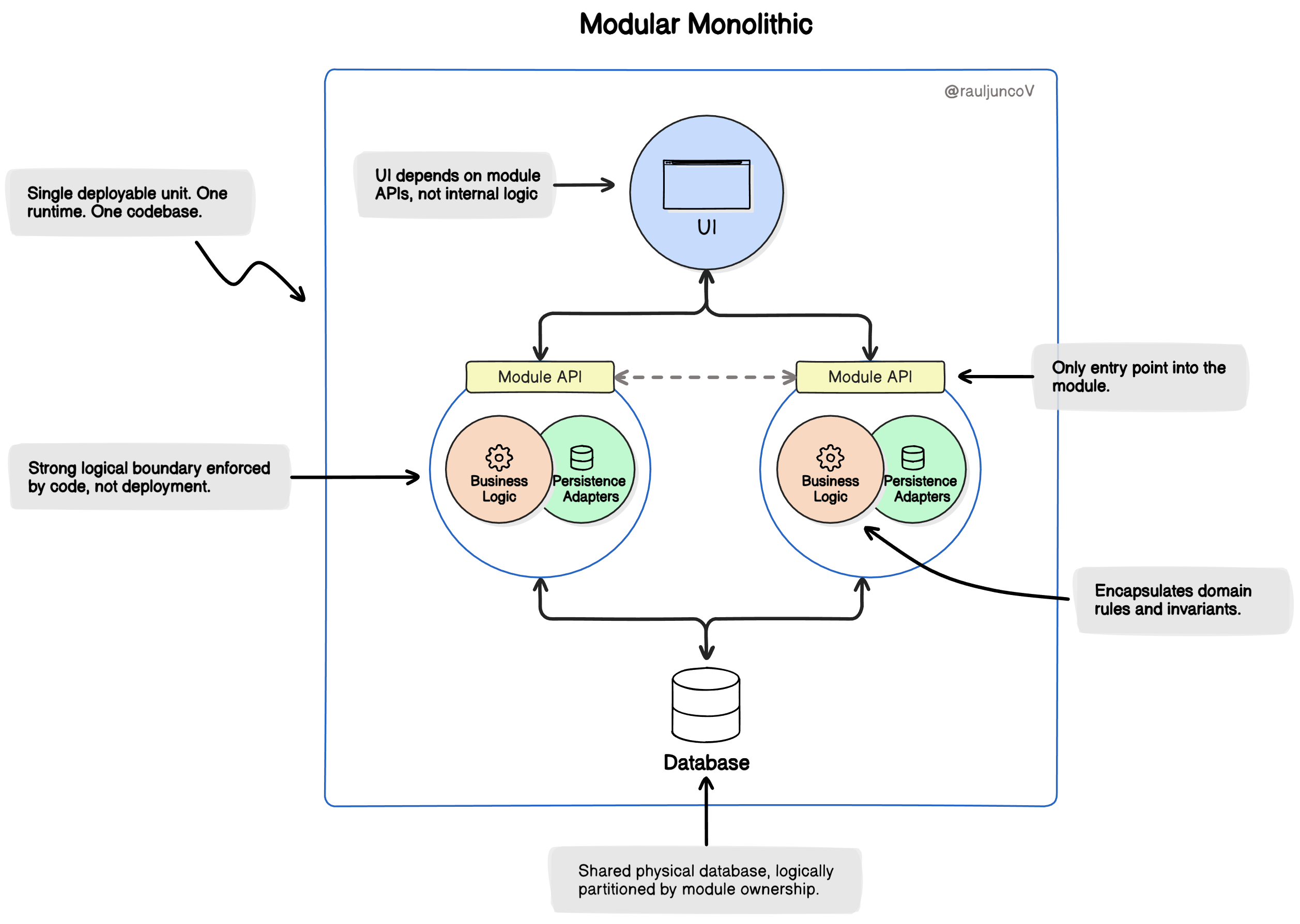 A modular monolith scales better than a distributed system built in panic.